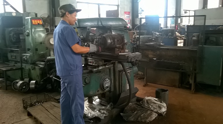 是各个零部件机械加工都要在这个车间完成。山东泗水鑫峰面粉机械有限公司的机械加工车间拥有机床50多台,有车床、铣床、磨床、刨床、钻床等等。我们知道,磨粉机是面粉机的核心部件,磨粉机的几乎所有部件,例如齿轮、皮带轮、磨箱盖、磨辊等等,都要经过机床加工来完成。这是车床的工人师傅正在聚精会神的操作机器。