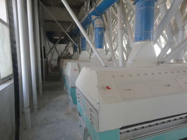 作为大型面粉机设备来说,科学的设计和布局是整个生产线的关键一环。山东泗水鑫峰面粉机械有限公司是一个集设计、制造、安装、调试于一体的大型面粉机械制造综合集团公司。这个企业设计的200吨楼层结构大型面粉机设备,一楼摆放全自动企业复式磨粉机;二楼是清粉机,通过清粉机对面粉进行2次加工;三楼是由高方筛组成的提粉设备,此外还有安装在四层楼上的风网等其他设备。这是200吨楼层式大型面粉设备安装在二楼的清粉机的图片。下面是关于200吨以及楼层式大型面粉设备的简单介绍: