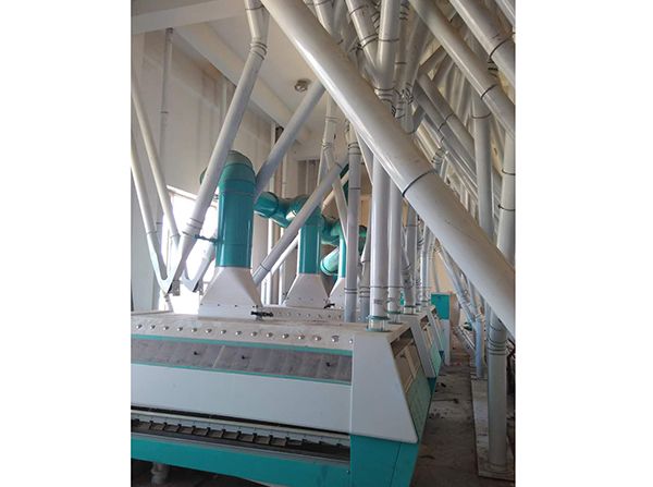 我们知道,清粉机是大中型面粉加工厂对进入心磨系统的颗粒物料分级提纯的设备。它的原理是利用气流和筛理的联合作用,提纯胚乳颗粒并缩小其粒度范围。清粉机属于面粉厂的制粉设备,该面粉机设备在加工低灰分优质面粉中起重要作用。作为180吨的大型面粉机来说,清粉机是必不可少的制粉设备。山东泗水鑫峰面粉机械有限公司将180吨面粉机的清粉机设置在3楼,通过清粉机可以实现对面粉的二次加工。这是该公司设计安装的新疆库车县粮食局面粉厂安装在3楼的清粉机图片。