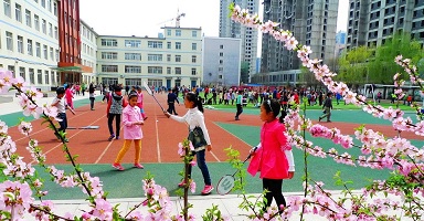 校园里不仅有花花草草,还种了许多果树,枇杷树,桃树,桔子树等等,春天里的果树都穿着绿色的衣服,给教学楼之间添了许多鲜活的色彩。