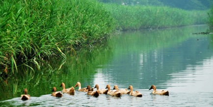 在当年,我们依靠河流沟壑,纵横生长,形成一片青青世界,成为新四军打击日伪军和养伤员的天然屏障,留下了新四军和革命群众为广大人民争取自由解放作斗争的足迹。这一切虽然已成为历史,但那铿锵高昂的激情在我心底荡漾,映照了这一片芦苇荡。今天的芦苇荡是多么的平静安宁,那么的幸福安详,有68种鸟类生活在这里,使这浩荡的湖面更加的优雅有生气,湖水滋养了我们,湖水荡涤了一切尘埃,也洗去了我心灵的污垢。