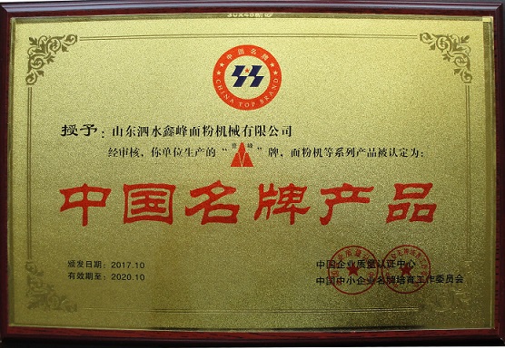 面粉机等系列产品多次被授予国家名牌产品称号,并且
