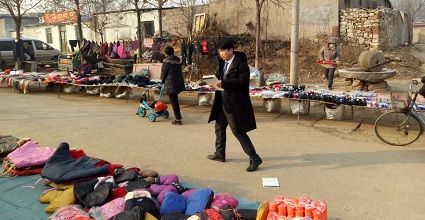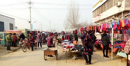 原集大街上,卖针织品、成衣的摊子,给这个集增添了热闹的气氛。