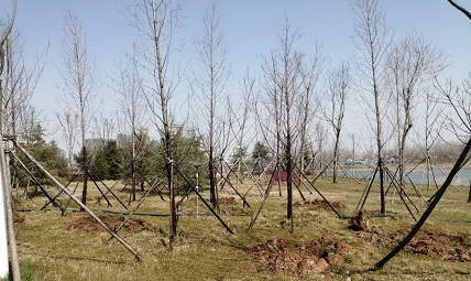 中午,人很少。有个园丁,在用铁锨整理着树坑,准备浇水吧。毕竟是春天了,今年的春天也没有下过大雨。